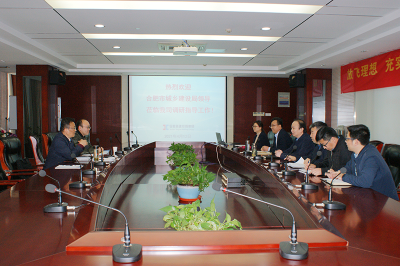 2021年4月12日下午,合肥市城乡建设局调研员王磊,在市政公用管理处有关领导的陪同下走访集团公司调研指导工作。集团总经理王鹏程携相关部门负责人进行了热情接待并参加座谈。