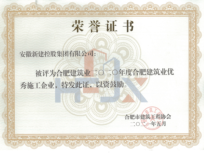 安徽新建控股集团始终坚持诚信为本,以质创誉,先后多次获得安徽优秀建筑企业、合肥市市政行业优秀企业、AAA级信用企业、安徽省建筑施工安全标准示范单位、安徽省环境保护优秀施工单位、农民工工资保障工作先进单位。公司始终坚持自营施工,具有很强的综合施工能力,二十多年来,承建了大批政府重点工程项目。已竣工项目多数为品牌工程,赢得了建设方的赞誉和好评,取得了良好的市场声誉。