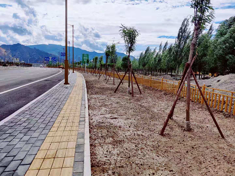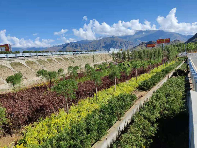 6-7月份拉萨雨季来临,正是植树造绿大好季节,拉萨市柳梧新区桑达村净土产业园连接线项目部抓住有利时机,抢天夺时,积极组织实施绿化工程以及标线等附属工程施工,并于近日完成附属工程基本施工任务。