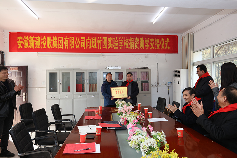 为勇担社会责任,助力革命老区的教育事业,2022年1月12日,安徽新建控股集团积极响应省工商联号召,来到皖西大别山腹地安徽省金寨县斑竹园镇,为斑竹园实验学校进行捐资助学。捐赠交接仪式在金寨斑竹园实验学校沙堰教学点会议室举行,仪式由省工商联驻漆店村第一书记卫爱寿主持,安徽省工商联党组成员、副主席司应武、集团公司董事长王杰英、副总经理刘波、行政总监贺军、安徽省城市基础设施投资商会执行秘书长陈志武、斑竹园镇副镇长陈龙,以及斑竹园实验学校的有关领导、部分学生代表共同见证了这次捐助活动。