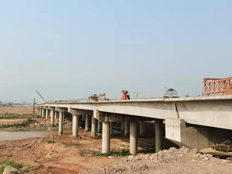 为确保优质、高效地完成桥梁主体工程施工任务,施工前,项目部结合现场实际,制定施工方案和专项施工方案,对现场技术人员和作业工人进行详细的技术及安全交底;合理配置人、料、机,确保施工生产有序进行。施工过程中,项目部对箱梁预制、预应力筋张拉、支座安装等工序严格把关,对箱梁混凝土质量、预应力筋质量、张拉应力值、张拉伸长率、支座质量、支座与梁底及垫石之间必须密贴等各项技术指标进行严格控制,保证了桥梁主体的施工质量。
