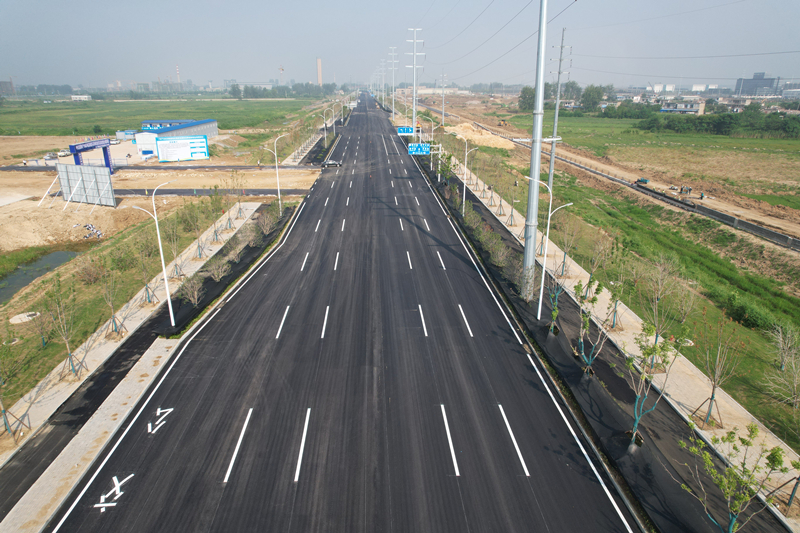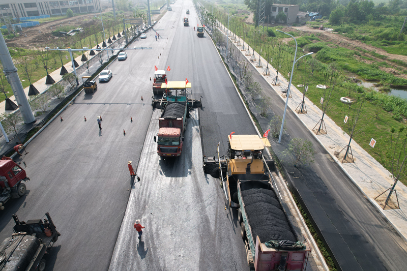 截止目前已顺利完成淮河大道面层沥青的摊铺工作,进行标线施划;另一条道路濠州路也在完成侧石铺设、人行道面砖铺设、交通标志标牌安装、路灯埋线及基础浇筑的基础上,进行沥青摊铺前的准备工作。