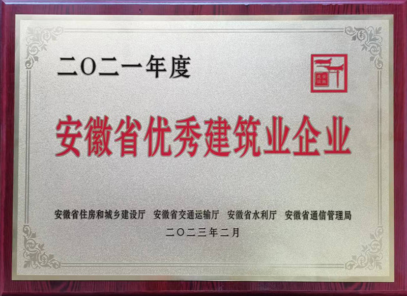 “安徽省优秀建筑业企业”是安徽省住建厅对建筑业企业评价的最高奖项,由省住房和城乡建设厅、省交通运输厅、省水利厅、省通信管理局组织开展的全省优秀建筑业企业认定评选活动,是对安徽省建筑业企业在社会责任履行、企业经营发展、企业管理创新、企业建造能力、企业文化建设等各方面成绩的肯定。旨在充分发挥省内优秀建筑业企业的引领带动作用,提升我省建筑业企业综合竞争力,锻造和打响“安徽建造”品牌,推动我省向建筑业大省强省迈进。