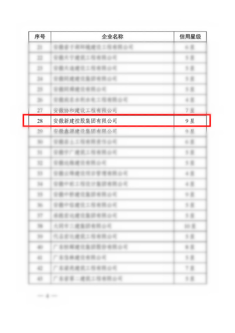 安徽新建始终坚持以诚信为本,以质创誉,在近年的信用星级评定中逐年持续上升,公司始终坚持自营施工,致力于打造精品工程,已竣工项目多数为品牌工程,赢得了建设方的赞誉和好评,取得了良好的市场声誉。