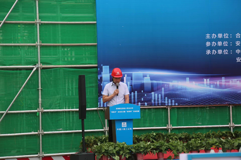 启动仪式上,包河区住建局、建发公司、质监站、安徽科创公司、中建八局二公司、集团公司等单位负责人以及工友代表都做了发言。