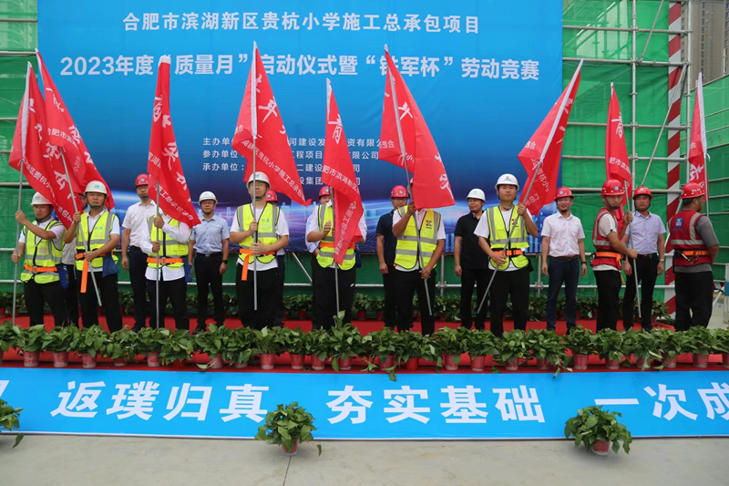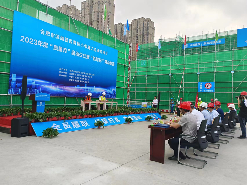 为贯彻、落实好全国“质量月”活动,进一步深化“增强质量意识,推进高质量发展”主题,9月6日,集团公司与中建八局二公司联合体承建的滨湖新区贵杭路小学施工总承包项目组织开展2023年度“质量月”暨“铁军杯”劳动竞赛启动仪式。包河区住建局领导、建发公司、质监站、安徽科创公司、中建八局二公司等单位负责人以及相关人员参加。