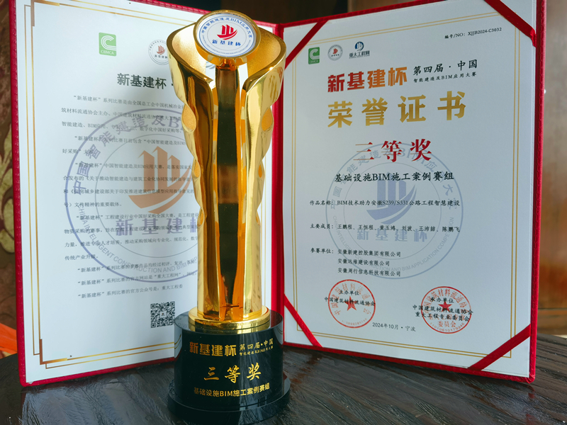 10月21日,由中国建筑材料流通协会主办的第三届中国重大工程数字生态大会暨第四届“新基建杯”BIM应用大赛优秀成果交流会在宁波召开,集团公司申报的《BIM技术助力安徽S239/S331公路工程智慧建设》荣获大赛基础设施BIM施工案例组三等奖。