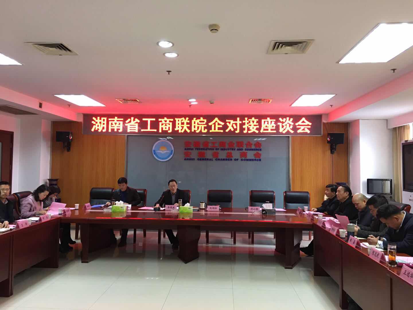 2018年3月19日上午,安徽省工商联在十八楼会议室举办“湖南省工商联皖企对接座谈会”,安徽省工商联党组成员、副主席兼秘书长李俊波主持会议,安徽省工商联副巡视员纪劲松、安徽省工商联会员处副处长李祖旺、安徽省工商联经济处主任科员许小明、湖南省工商联副巡视员甘露一行及十多位企业家代表参加了座谈会,安徽新建控股集团有限公司董事长应邀参加座谈会。
