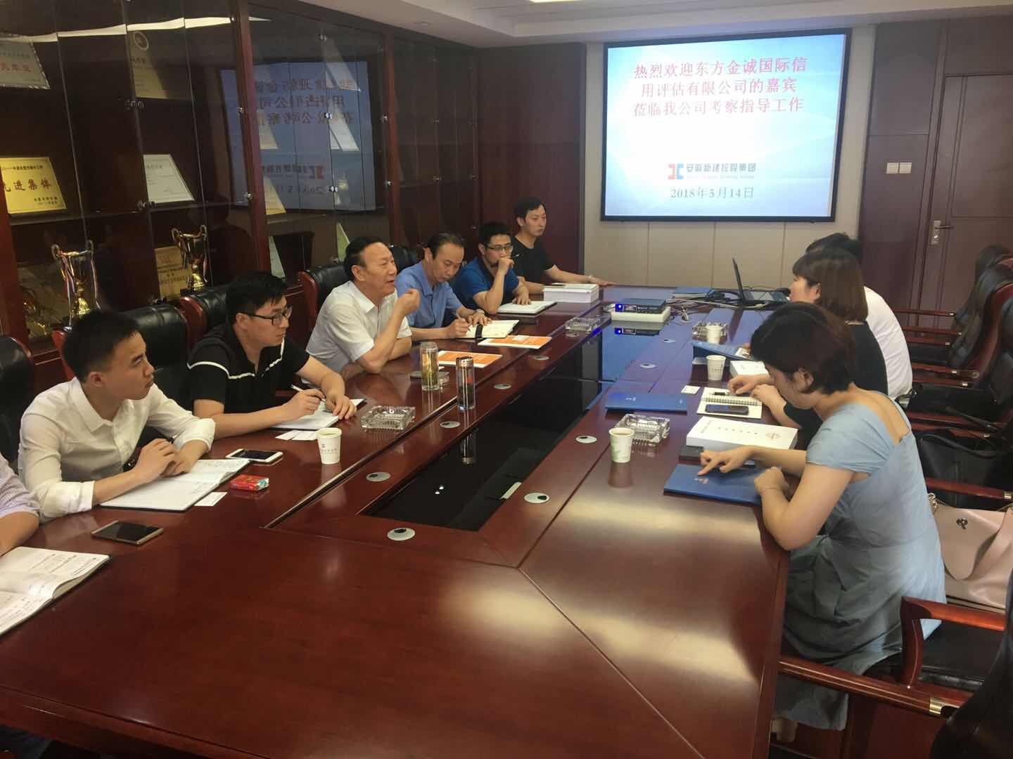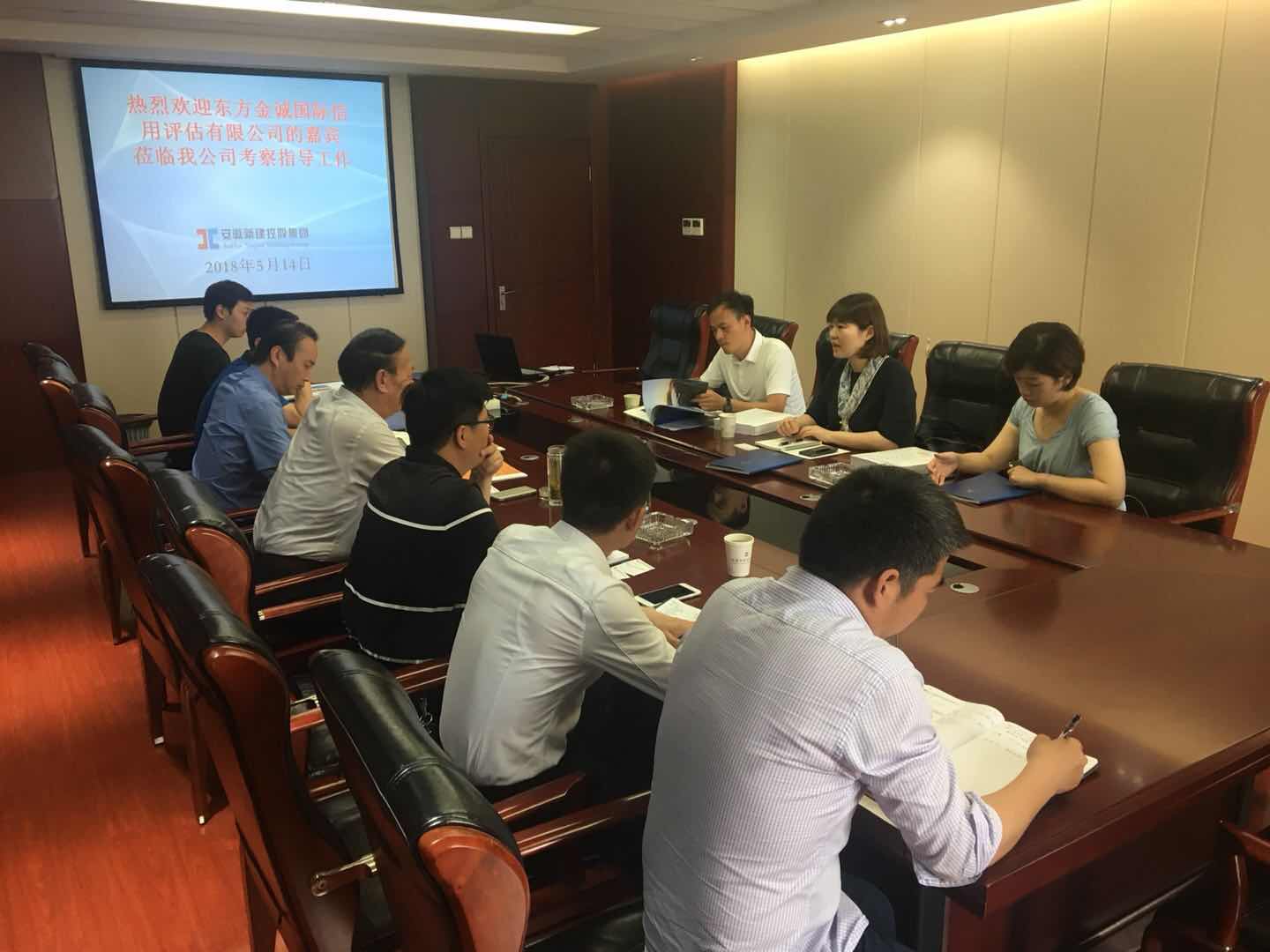2018年5月14日下午,东方金诚国际信用评估有限公司市场部总经理蒋晓洁、信用管理部总经理汪承伟、项目经理陈思一行来我公司洽谈商务合作事宜,安徽新建控股集团有限公司董事长王杰英及相关领导热情接待。