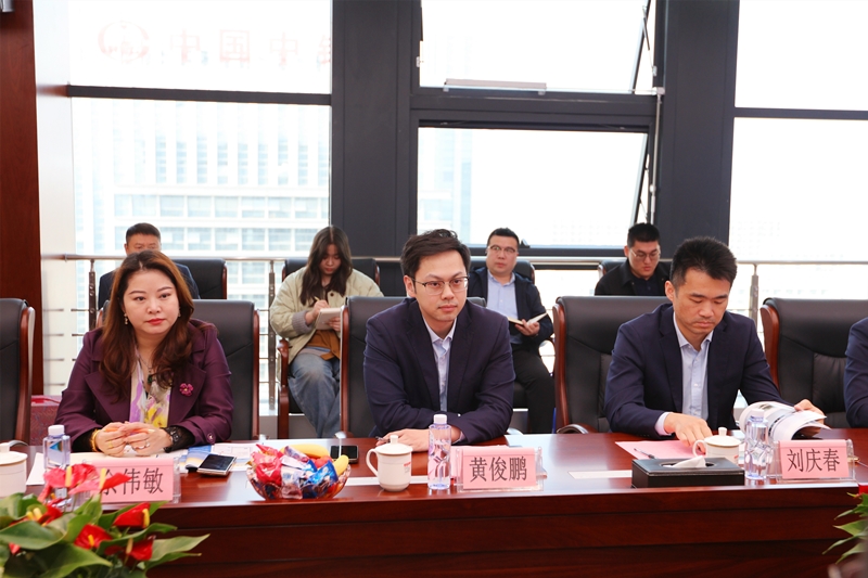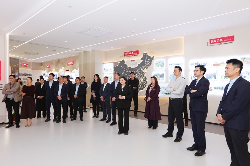 交流伊始,王恒程陪同黄俊鹏一行参观集团展厅。通过丰富的图文资料与荣誉展示,交流团全面了解集团发展历程、企业文化与建设成果。黄俊鹏对集团深厚的文化底蕴与精益求精的工匠精神给予高度评价与由衷赞赏。