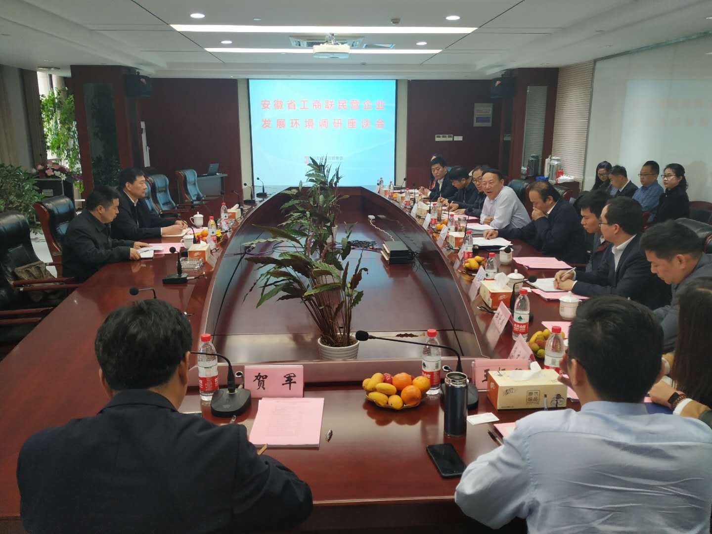 2019年4月28日下午,安徽省工商联在我公司举办了“安徽省工商联民营企业发展环境调研座谈会”。出席会议的有安徽省工商联党组成员、副主席施广勇、安徽省工商联政研室主任李增流,以及安徽省城市基础设施投资商会执行秘书长陈志武等各位企业家代表。