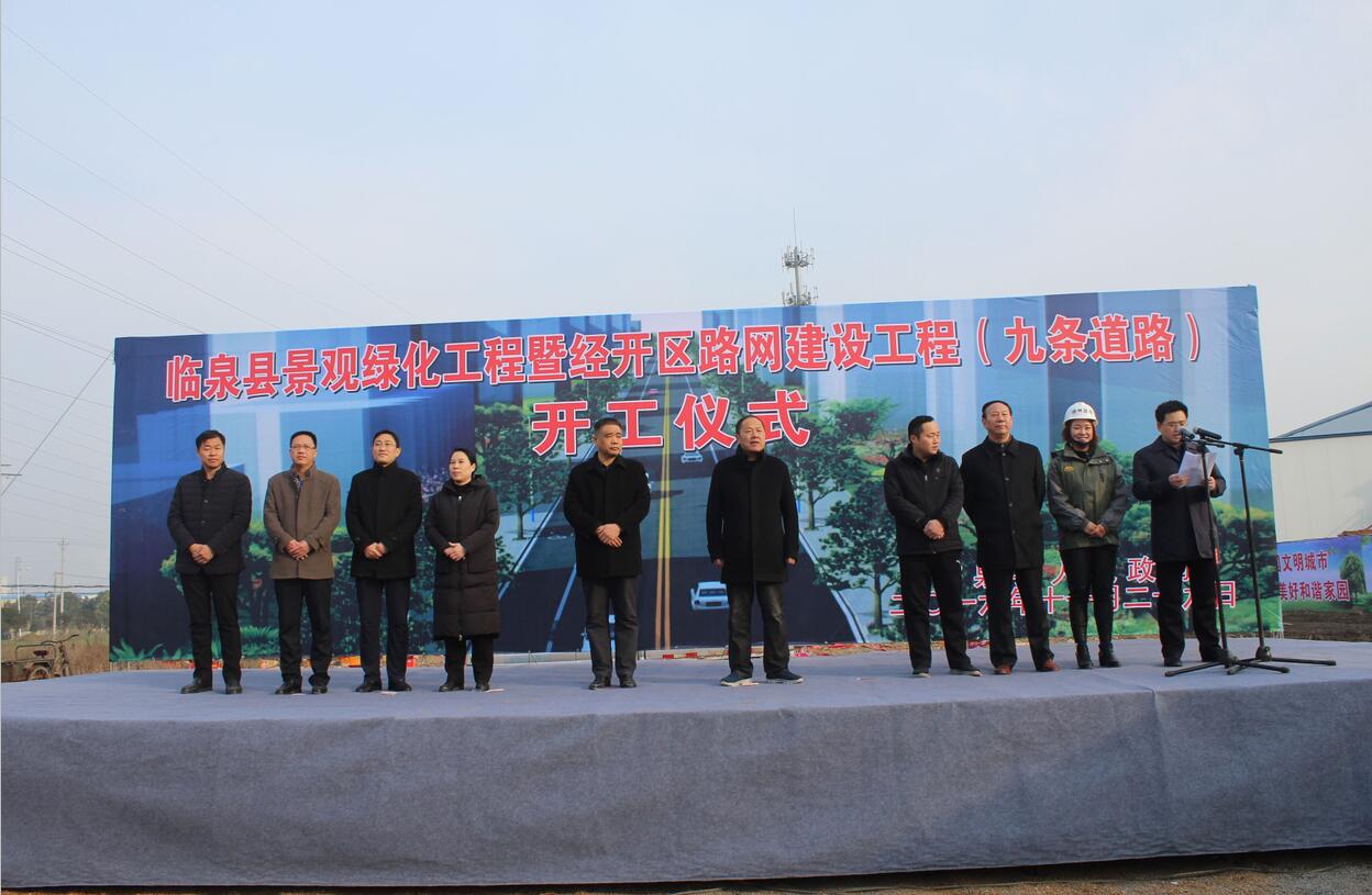 2016年11月29日,我公司中标的临泉县景观绿化工程暨经开区路网建设工程在临泉县经济开发区举行开工仪式。县领导梁永勤、罗惠新、魏艾、刘峰、张金波出席仪式。 我公司董事长王杰英对项目的顺利开工表示祝贺并承诺认真抓好全过程的管理,确保优质高效完成项目建设。