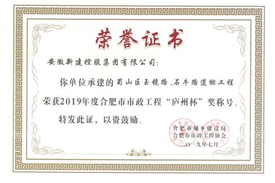 日前,从合肥市市政工程协会传来喜讯,经单位申报、部门推荐、合肥市市政工程协会组织资料审查研究、网上公示等程序,我公司承建的蜀山区玉镜路、石牛路道排工程、长丰县凤亭路(魏武路-濛河路)施工、程士范路(龙岗路-吴敬梓路)、明皇路(吴敬梓路-小板桥河)、吴敬梓路(明皇路-垃圾中转站)施工项目荣获“庐州杯”奖。