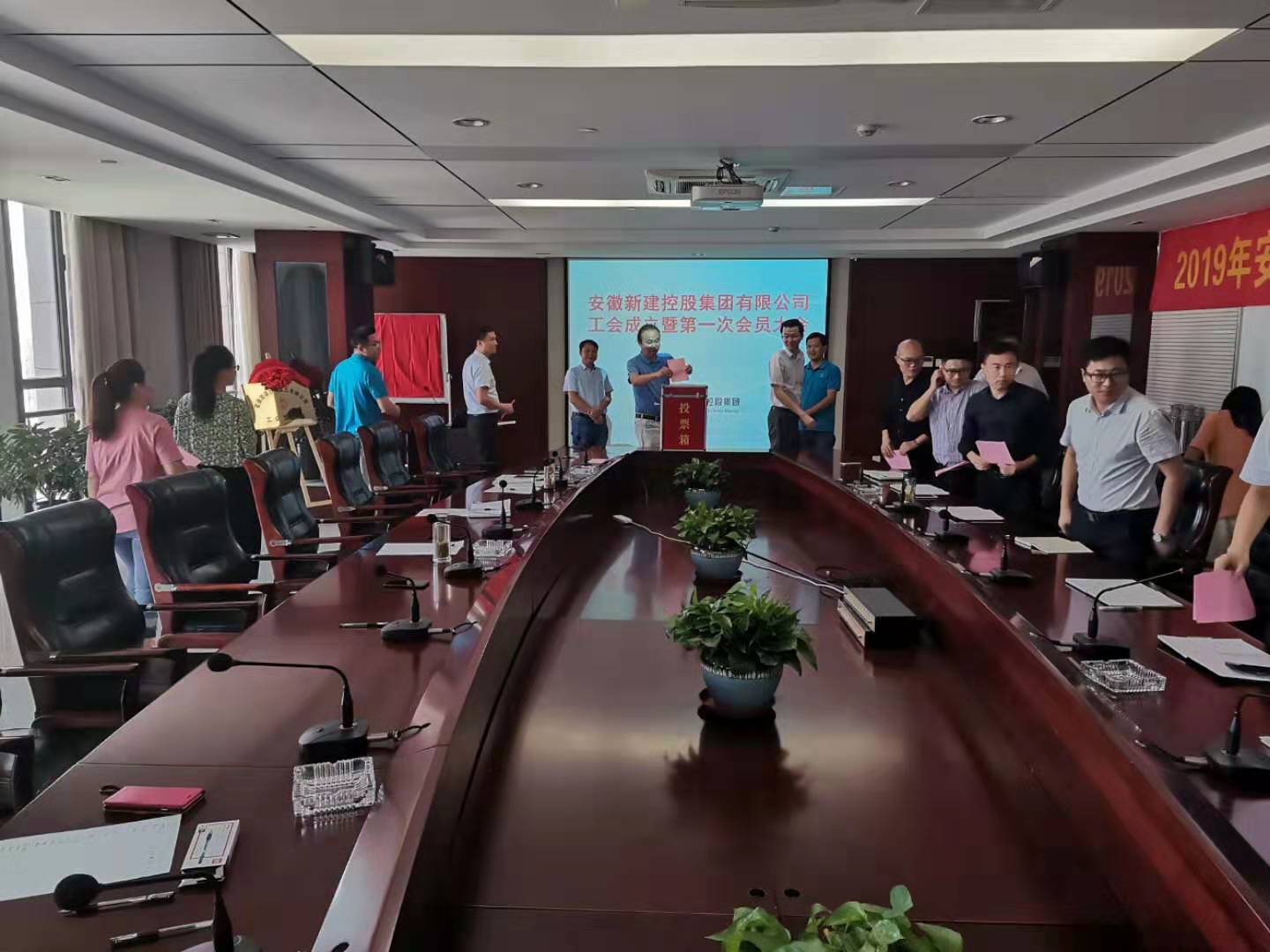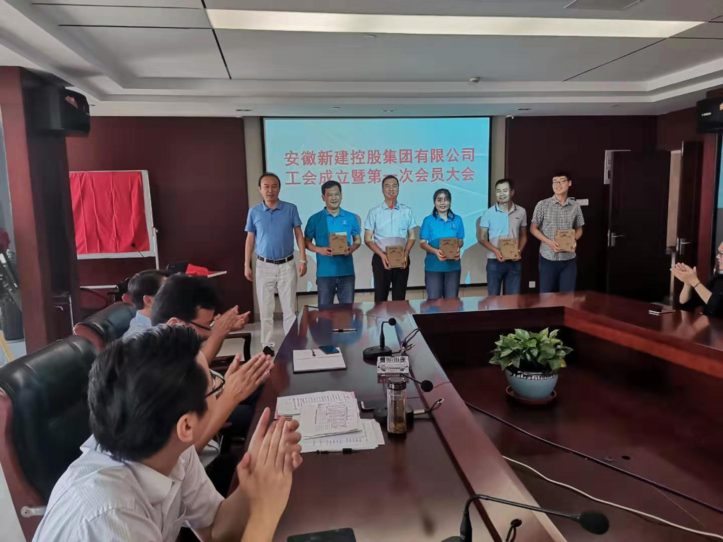 公司行政总监贺军宣读合肥市蜀山区南七街道总工会《关于同意成立安徽新建控股集团有限公司工会的批复》文件。