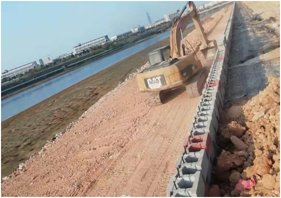 该工程设计总长4332米,其中左岸堤防设计长度为3188米,右岸堤防设计长度为1145米。施工单位主要负责堤脚抛石、预制生态挡墙、穿堤箱涵、道路工程、园建绿化、公共厕所、给水管线迁移等施工内容。该工程已于今年9月开工,目前左右两岸清水平台已基本完成施工,接下来将进入生态挡墙基础及砌筑施工阶段。