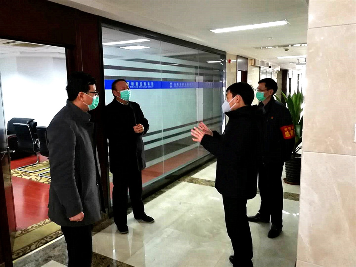 贺总向检查组一行领导详细介绍了我公司防疫及复工开展的情况。检查组对公司开展防疫工作宣传、落实员工体温检测登记、防疫物资准备及发放、办公区域的消毒情况记录、员工佩戴口罩的情况进行认真检查。